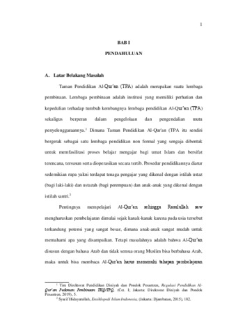dalam penelitian adalah untuk mengetahui strategi pembelajaran Al-Qur’an di TPA